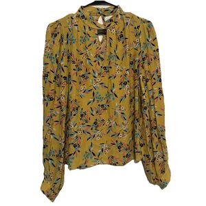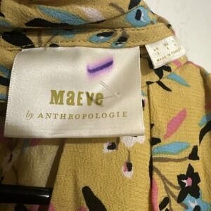 Maeve by Anthropologie Meadowsweet Sz 2 Yellow Floral Keyhole Neck Blouse
