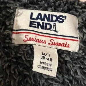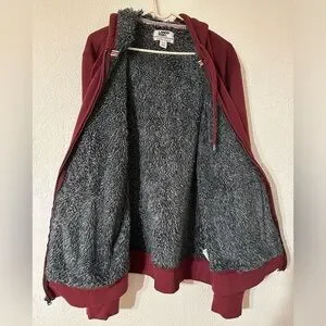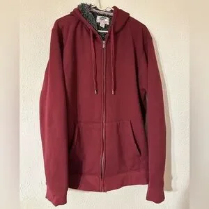 Land’s End Serious Sweats men burgundy with gray Sherpa lined hoodie in great condition. It is a plush jersey knit fully lined with Sherpa lining including arms and hood. Approximate measurements: armpit to armpit is 22.5 inches and shoulder to hemline is 27.5 inches.