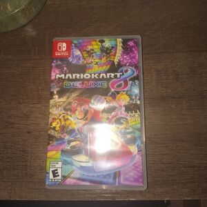 Experience thrilling races with Mario Kart 8 Deluxe. Vibrant cover art featuring iconic characters. Perfect for Nintendo Switch.