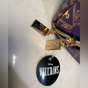 Add a touch of dark glamour to your vanity or travel routine with this Bath & Body Works Disney Villains akeup bag, featuring a rich purple faux-leather exterior adorned with gold villain iconography inspired by iconic Disney villains.