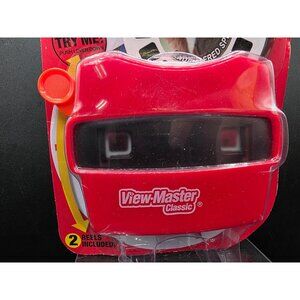 This View-Master 3D Classic Viewer set brings to life the fascinating world of endangered species via immersive 3D imagery. Featuring two reels with 14 sharp and vibrant images, this viewer serves as an educational tool for discovering the wonders of wildlife. Partnered with Discovery, this set highlights species like the African elephant, red-and-green macaw, and golden mantella frog. Designed for easy operation, the set includes a durable red plastic viewer and intuitive lever functionality. Compatible with all View-Master reels. Packaging shows slight wear but remains intact.