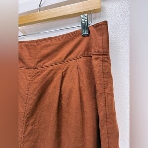 Anthropologie Linen Blend Button Side Wide Leg Pants US 6 Rust Brown