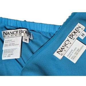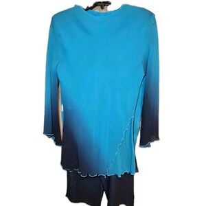 Nancy Bolen City Girl Women's Sz M Blue/Black Ombre 100% Silk 2pc Pant Suit