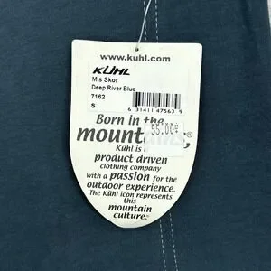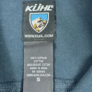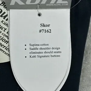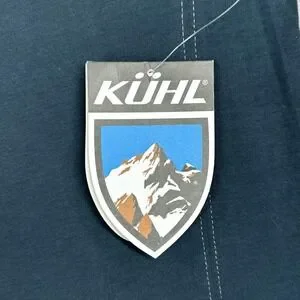 Branding: Kuhl shield logo patch on the left sleeve, woven logo neck label, and original hangtags attached.