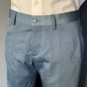 Offered is a Zara men's 2-piece suit in a striking slate metallic blue tone.