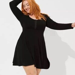 Torrid Mini Waffle Long Sleeve Skater Black Dress Size 2
