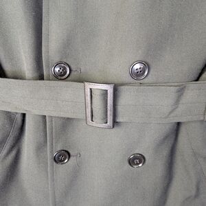 Vintage Green 1989 Military Wool Trench Coat by Freed & Freed, Double Breasted