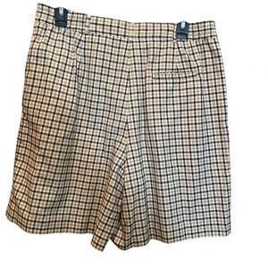 Talbots Flannel short. Side hip pockets. Zippers fly with two button closure. Zipper is functional. Back slit pocket on righty side. Double front pleats on each side of zipper. Color: Beige, white and black plaid. Elasticic at waist sides. Size: 14. Possible petite? See vendor tag. 65% Polyester, 35% Rayon, excellent condition. Pet free smoke free environment. No stains, rips or tears. 80s/90s preppy vibe.