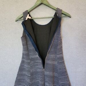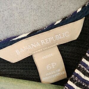 Banana Republic Dress 6P Fit & Flare A-Line Knee Length Navy Blue White Ribbed