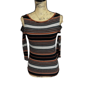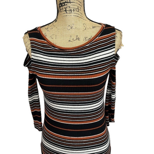 Free People Striped Ribbed Cold Shoulder Top