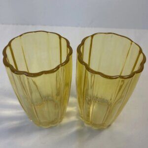Scalloped 12oz Yellow Glass Tumblers Set of 2 Drinking Glasses 5.5'' Tall