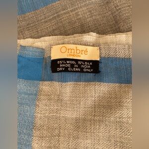 Ombré London Wool Silk Gray and Blue Striped Scarf Casual Shall