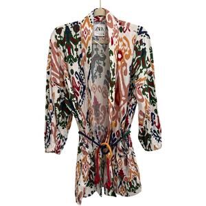 ZARA Hanoi Tribal Linen Blend Boho Tie Wrap Kimono Blazer Size Women's Small