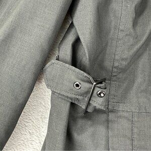 The North Face Hyvent Black Windbreaker Women's Size Large Windproof Waterproof in good pre owned condition as shown in the photos with no flaws. Just hard to get the belt into the right hand side of the jacket as shown in the third photo.