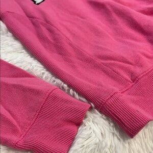 Embrace comfort and style with this vibrant pink crewneck sweater from PINK Victoria's Secret. Featuring a classic ribbed neckline, cuffs, and hem, this sweater is perfect for casual outings. The bold 'LOVE PINK' varsity-style text adds a trendy touch to your wardrobe.
