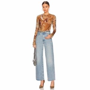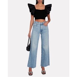 - Raw hems, wide leg, zip fly with button closure, 5 pocket style, belt loops, distressed