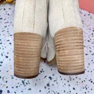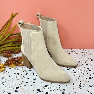 Steve Madden Trekk Sand Tan Pointed Suede Leather Stacked Heel Boots Sz 6.5