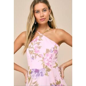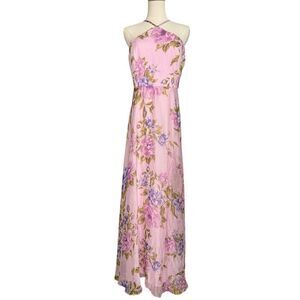 Lulus Women’s Large Maxi Dress Romantic Light Pink Floral Print Halter Neck NEW