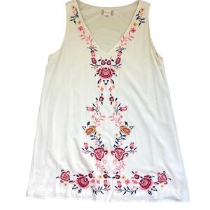Altar’d State Embroidered Floral Boho Dress Size Medium Flowers Cream Pink Red