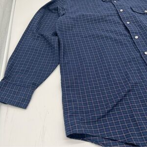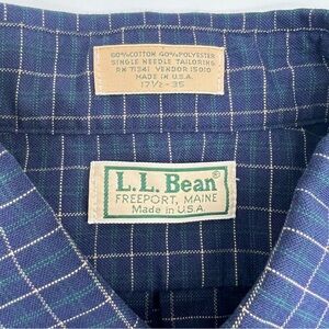 Vintage L.L. Bean Button-Up Shirt – Size 17.5x35 Made in USA – Navy Grid Check