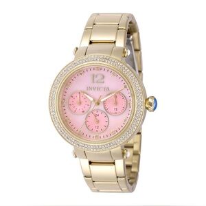 Chic Invicta watch with a gold band and pink face. Ideal for stylish elegance.
