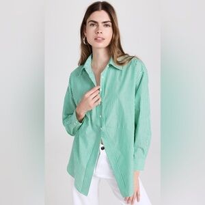 Pure and crisp cotton fabric composes this everyday-friendly Favorite Daughter button-down shirt, which is cut for a relaxed fit and detailed with a thin stripe motif.
