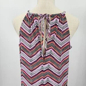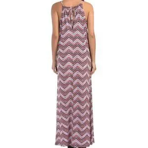 Trina Turk Milian 2 Chevron Maxi Dress Purple Halter Tie Back Keyhole Sleeveless Lightweight Breathable Stretch Women's
