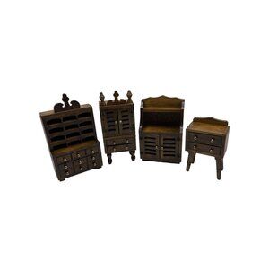 Wooden Dollhouse Dining Room Furniture China Cabinet Lot of 4 Pieces Vintage