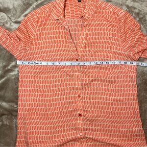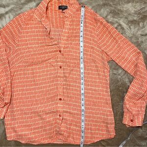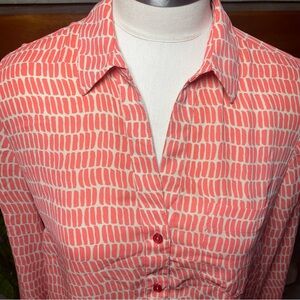 The Limited Ashton Coral Geometric Print Blouse Size M Button Front Long Sleeve