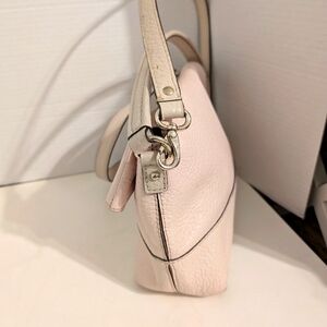 This cream crossbody bag by Kate Spade features a sleek and minimalist design, perfect for everyday use. Its structured shape and adjustable shoulder strap offer both style and functionality, making it a versatile accessory for any outfit.