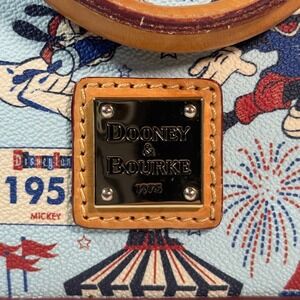 Collectable Dooney & Bourke handbag featuring a Disney Mickey Mouse print with iconic park imagery.