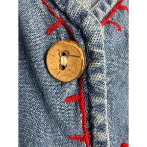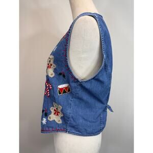 Vintage 80s Christmas Bear Embroidered Denim Vest | Whimsy Grandmacore | Size M