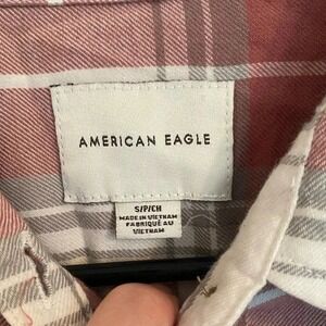Keywords: American Eagle, flannel shirt, crop top, plaid shirt, button up shirt, long sleeve, casual top, womens shirt, small, pink plaid, grey plaid, cropped flannel