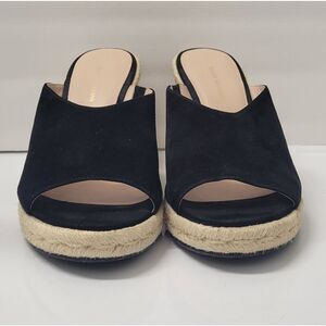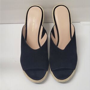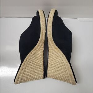 Stuart Weitzman black suede wedges with woven espadrille heel. Ideal for chic outings.