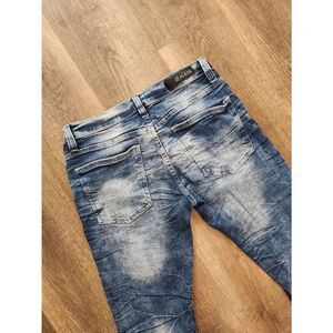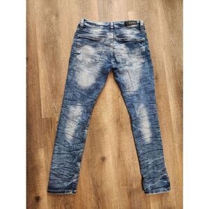 Buckle Black BKE 'Skinny Flex' men's 30x29.5* measured (30x32 tagged) Acid wash whiskered dark. good pre-owned condition no stains no holes measurements provided in pictures are approximate please check measurements for proper fit