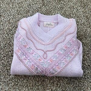 Vintage Jaclyn Smith Purple Lace Floral Pearl Cottagecore Sweater