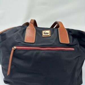 This elegant baby bag combines functionality with style. Featuring a sleek black design with brown accents, it's perfect for modern moms on the go.