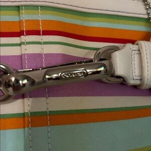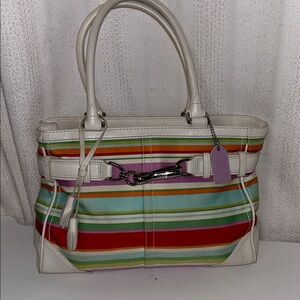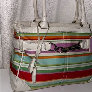 Coach Hampton Multicolor Canvas White Leather Trim Stripe Satchel With Wristlet