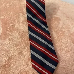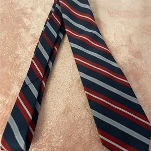 Enhance your wardrobe with this elegant red and black striped tie. Perfect for adding a touch of sophistication to any outfit.