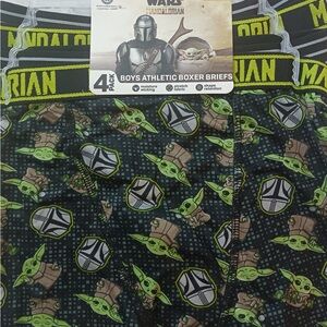 Boys' boxer briefs with Mandalorian and Grogu design. Features black and green colors.