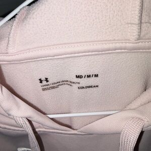 Light pink hoodie with a front pocket. Features a white Under Armour logo.