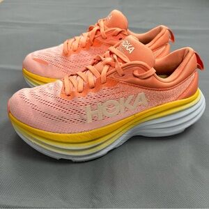 Hoka One One Womens Bondi 8 Size 6.5(B) Peach Running Shoes Sneakers 1127952