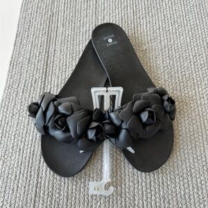 SHADE AND SHORE black rosettes faux leather slides sandals. New with tags. Size 11.