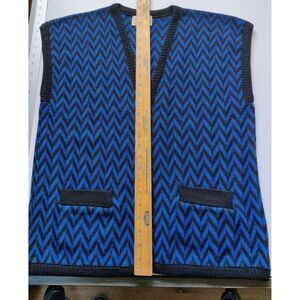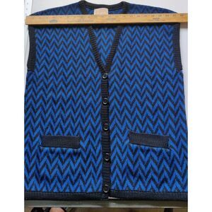 Vintage Pendleton Wool Sweater Vest Womens Size L Blue Black Chevron Pockets