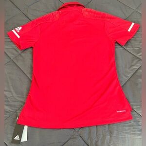 NEW WITH TAGS Women ADIDAS (INDIANA) Red Short Sleeve Polo Shirt With the White INDIANA cursive logo on the front left.