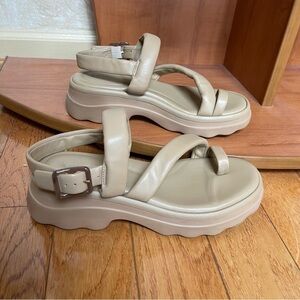 Vince Santa Cruz Leather Slingback Sandals Beige Quilted thong Dune toe Sz 8