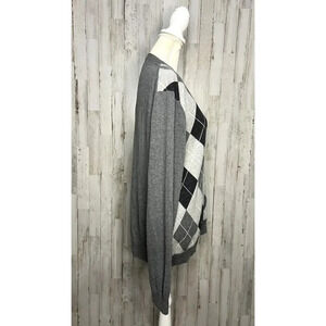 Express Design Studio Women's Size Large Gray Argyle V-Neck Sweater