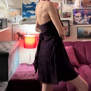 Experience comfort and style with this elegant purple satin halter dress. Perfect for a spontaneous living room dance party.