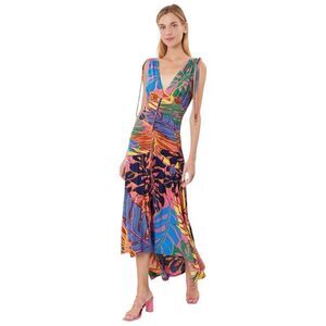 Derhy Rene Deep V-Neck Patterned Maxi Dress Size S