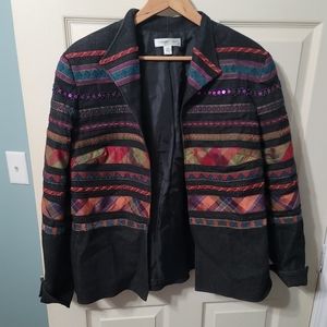 Coldwater Creek Denim Beaded Deco Open-Face Jacket Women's 14. Excellent Pre-Owned Condition.